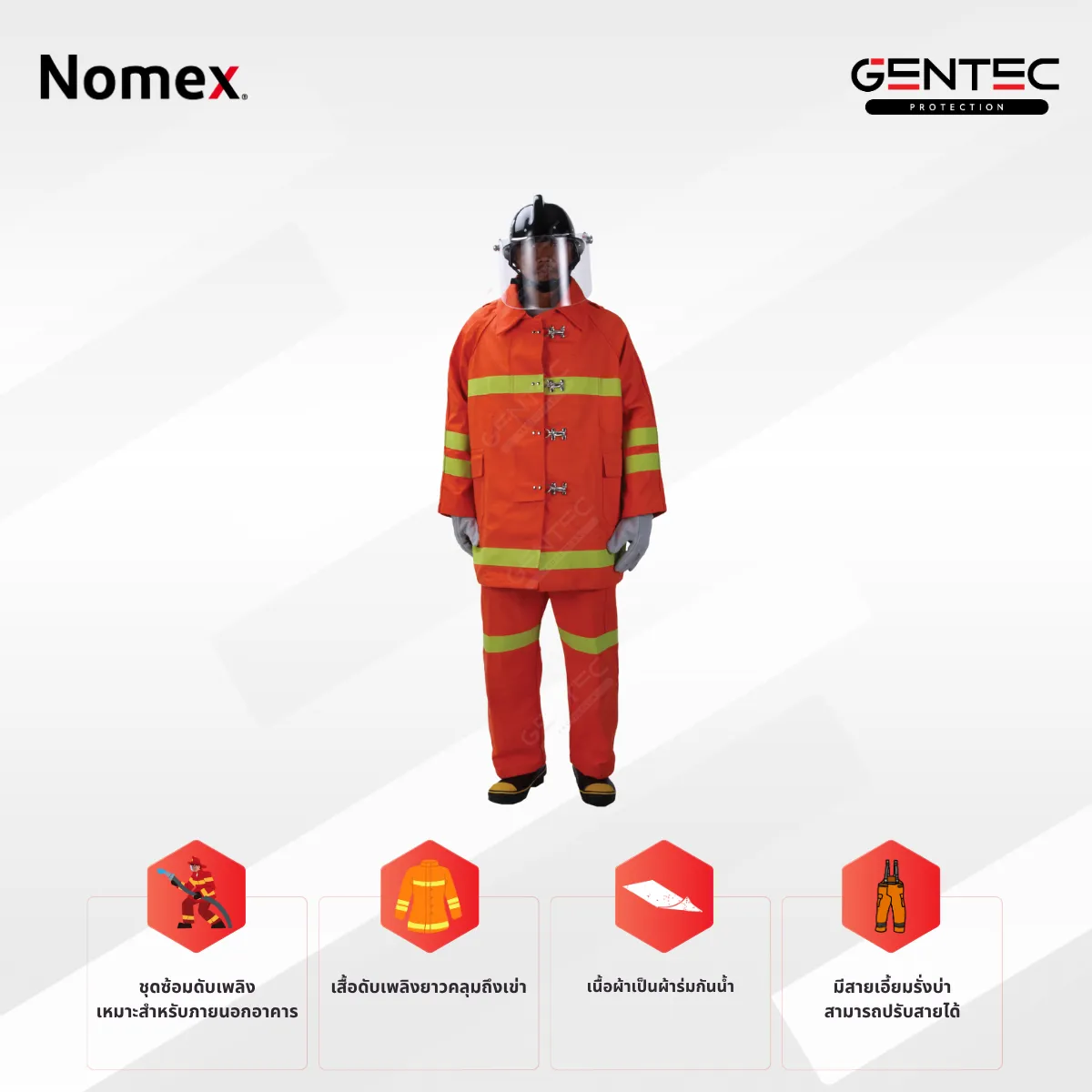 | มาตรฐานความปลอดภัย (Standards) | NFPA 1976, EN 1486 (สำหรับ Proximity Firefighting) |